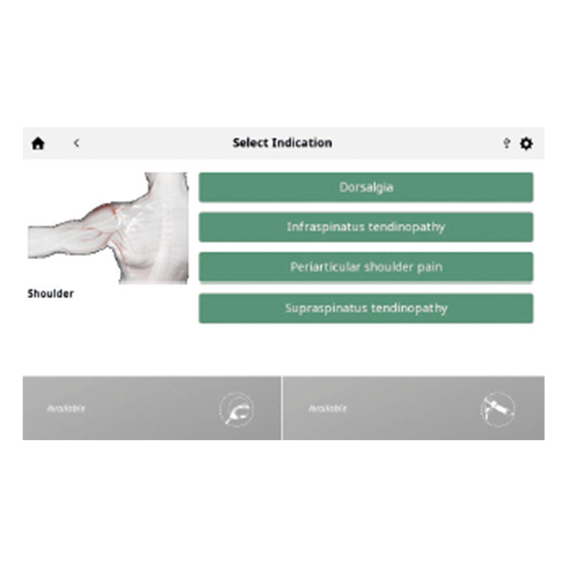 17 different transmitters available for tendinopathies, trigger points, spine and fascia treatments.