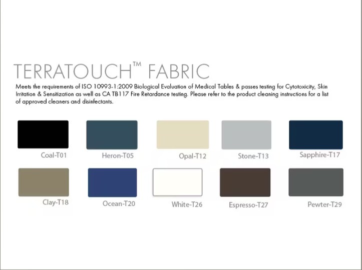 - Fabric: Premium, PVC-free TerraTouch™ Medical Grade Fabric is ISO 10993 Certified