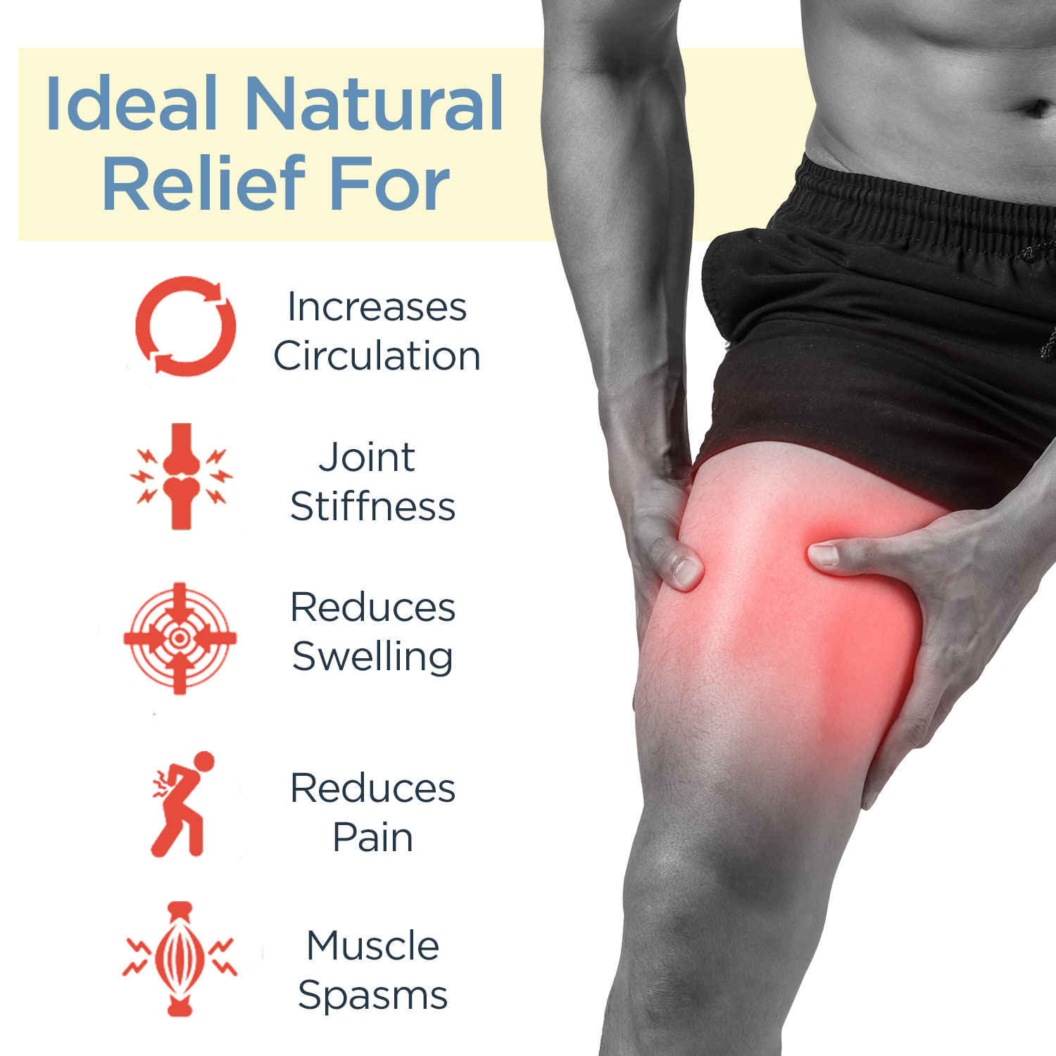 - Helps reduce pain, swelling and stiffness